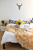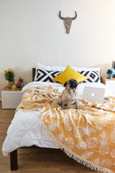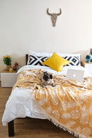 Large Boho Blanket 220cm x 240 cm - Mustard with Pineapple